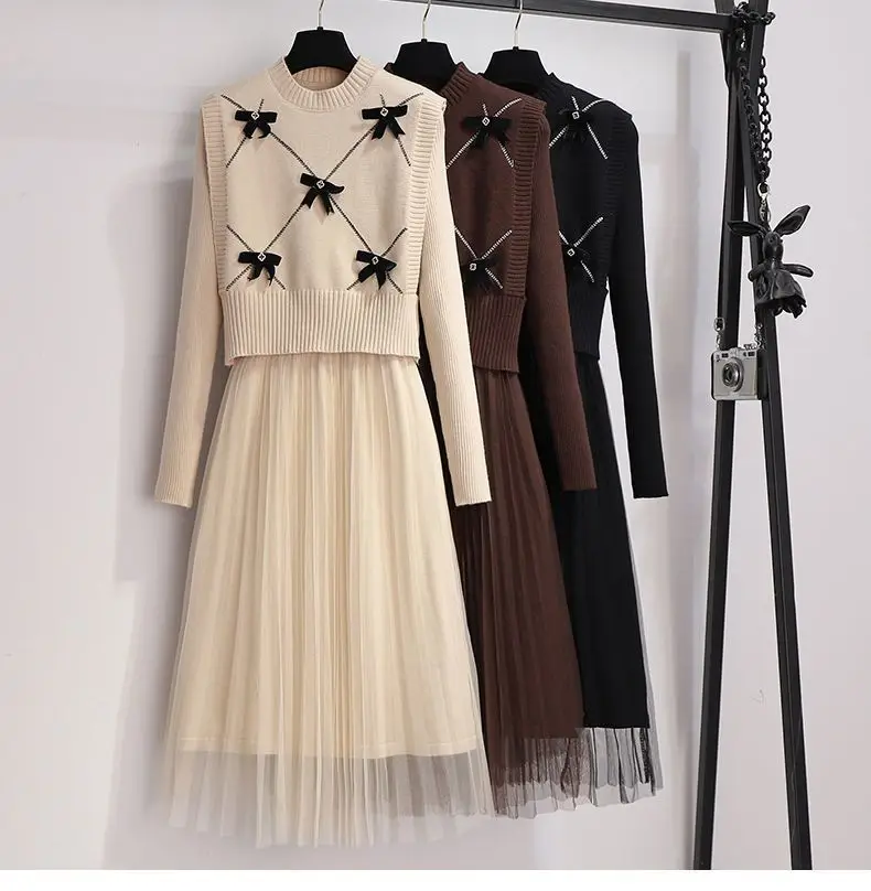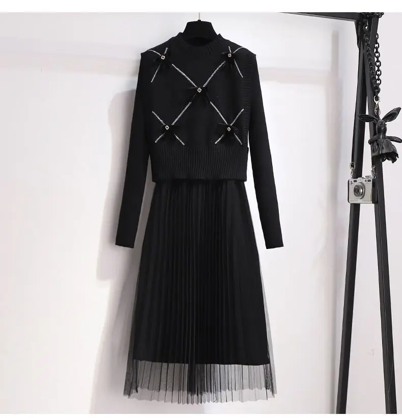 "Chic Knitted Sweater & Dress Two-Piece Set"